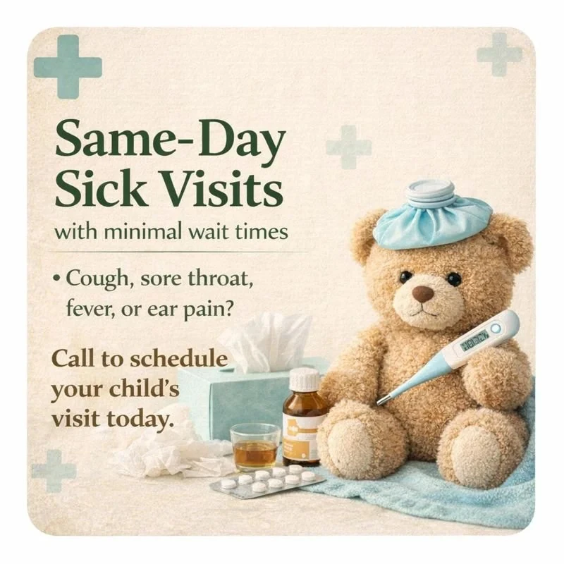 We use thorough evaluation, rapid testing when needed (flu, strep, RSV, COVID), and clear treatment plans for every family.